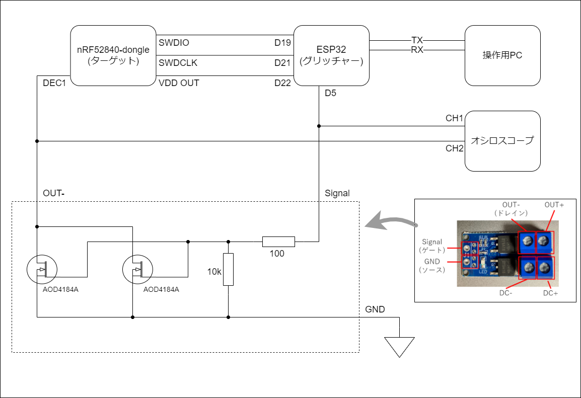 nRF52に対してVoltage Fault Injectionを行う、シリアルコンソールで簡単に操作可能なグリッチャーを作ったぞ!