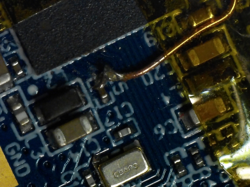 基板上の同コントローラはロックダウンされており、消去や書き込みは可能なものの、ファームウェアを読み出せなかったという。一方で同種のnRF52840コントローラでは、電圧変化によるフォールトインジェクションを利用してデバッグ機能を再度有効化できた例がすでに存在しており、同氏はこの手法を活用してデバッグ機能を有効化し、ファームウェアの読み出しに成功した。
